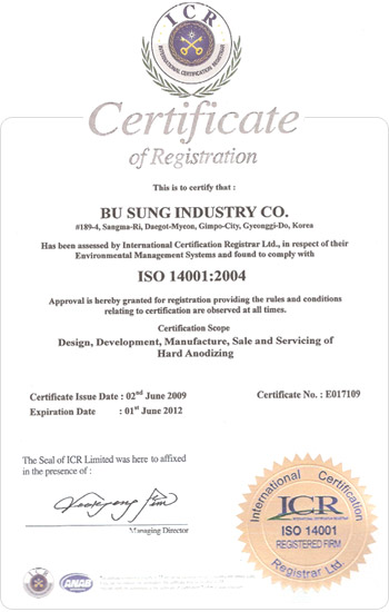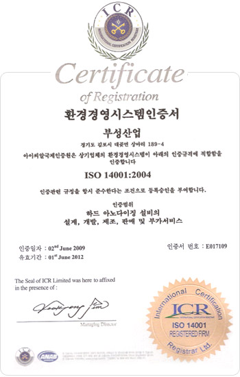 ȯ°æ°æ¿µ½Ã½ºÅÛÀÎÁõ¼ISO 14001:2004